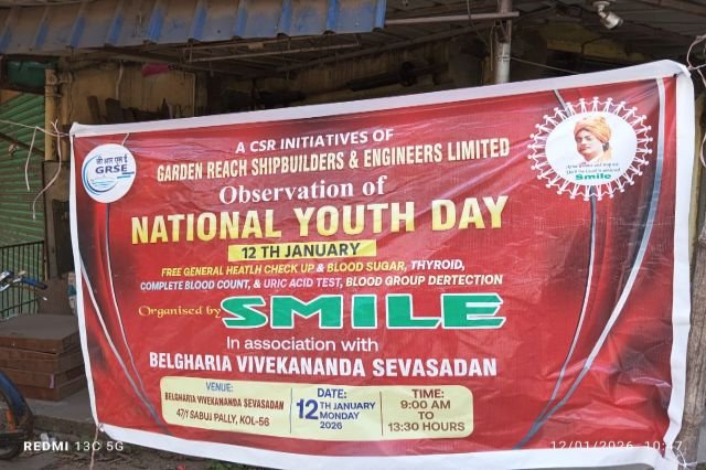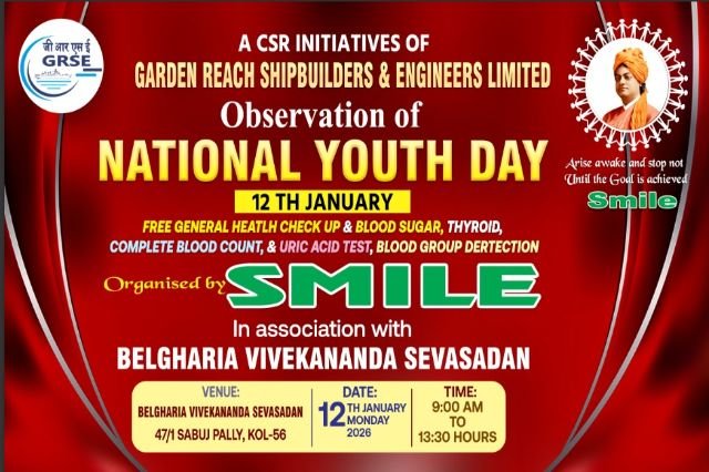On 12th January, SMILE observed National Youth Day by organizing a free health check-up camp offering blood sugar, thyroid, uric acid tests, blood grouping, and complete blood count (CBC). This initiative was conducted as part of the CSR support of Garden Reach Shipbuilders and Engineers Limited (GRSE Ltd.), reaffirming the shared commitment towards youth health and community well-being.